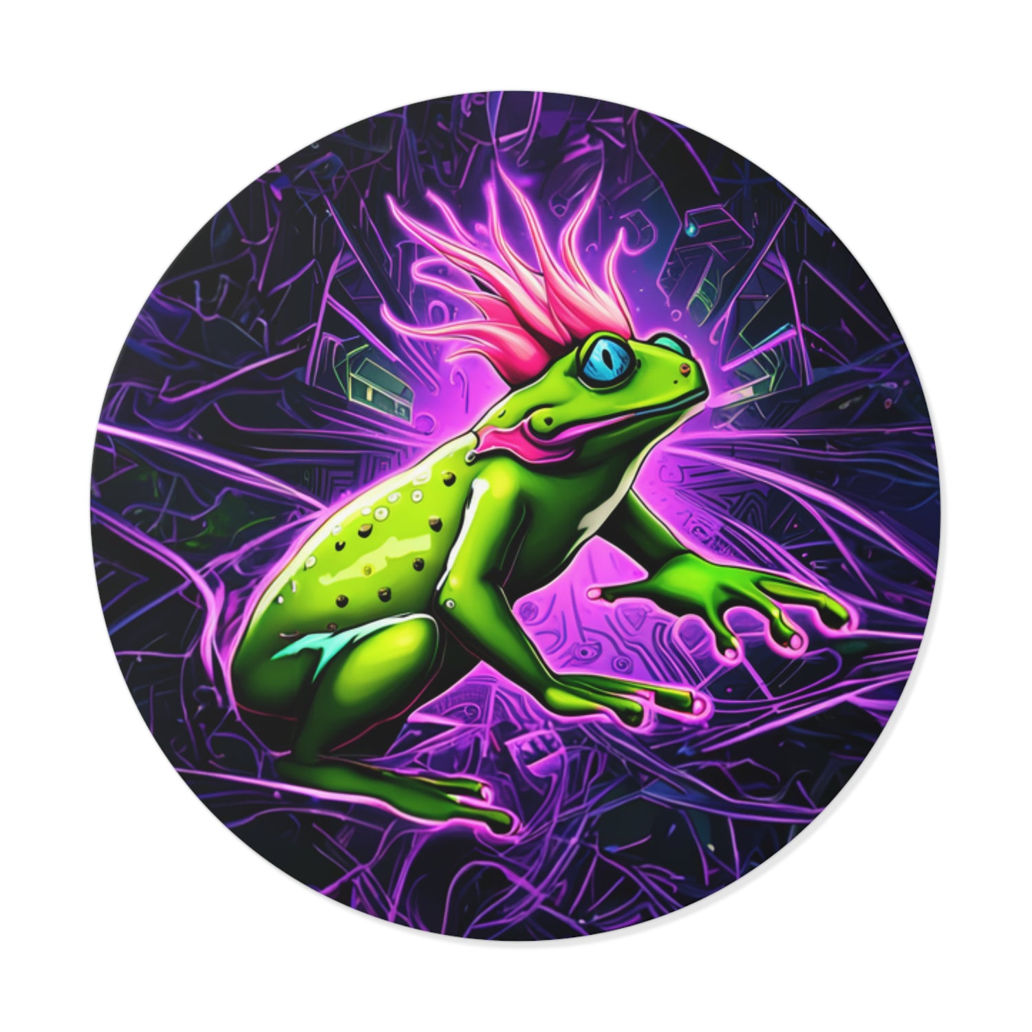 This cyber punk inspired frog brought to live from a request for a frog with a pink mohawk