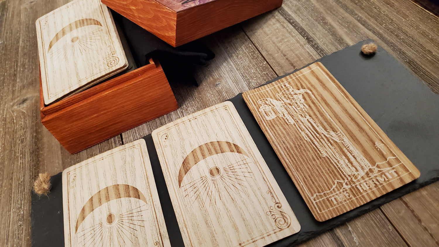 This Smith-Waite Tarot Card Deck is created with real sassafras wood to assist in the divination process. A unique and bespoke addition to any tarot card collection! Each card is hand-made into a one-of-a-kind deck.